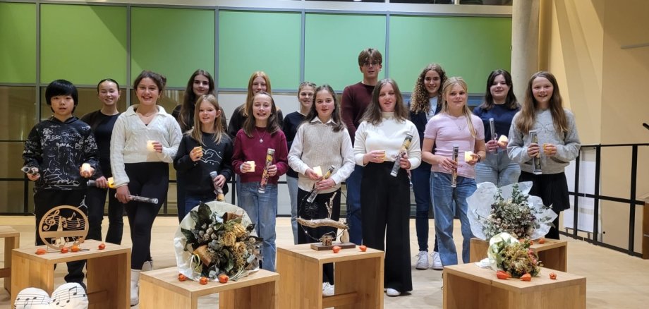 Beim diesjährigen kleinen Herbstkonzert präsentierten Schülerinnen und Schüler aller Jahrgangsstufen unter der Gesamtleitung von Maria Schukov ihr musikalisches Können. Das rund zweistündige Konzert bot dabei ein buntes musikalisches Programm klassischer und moderner Stücke sowie kleinerer Medleys. So bot Paula Gerhard die "Mondscheinsonate" von Ludwig v. Beethoven dar und Mathea Gregor präsentierte das "Wiegenlied" von Johannes Brahms.